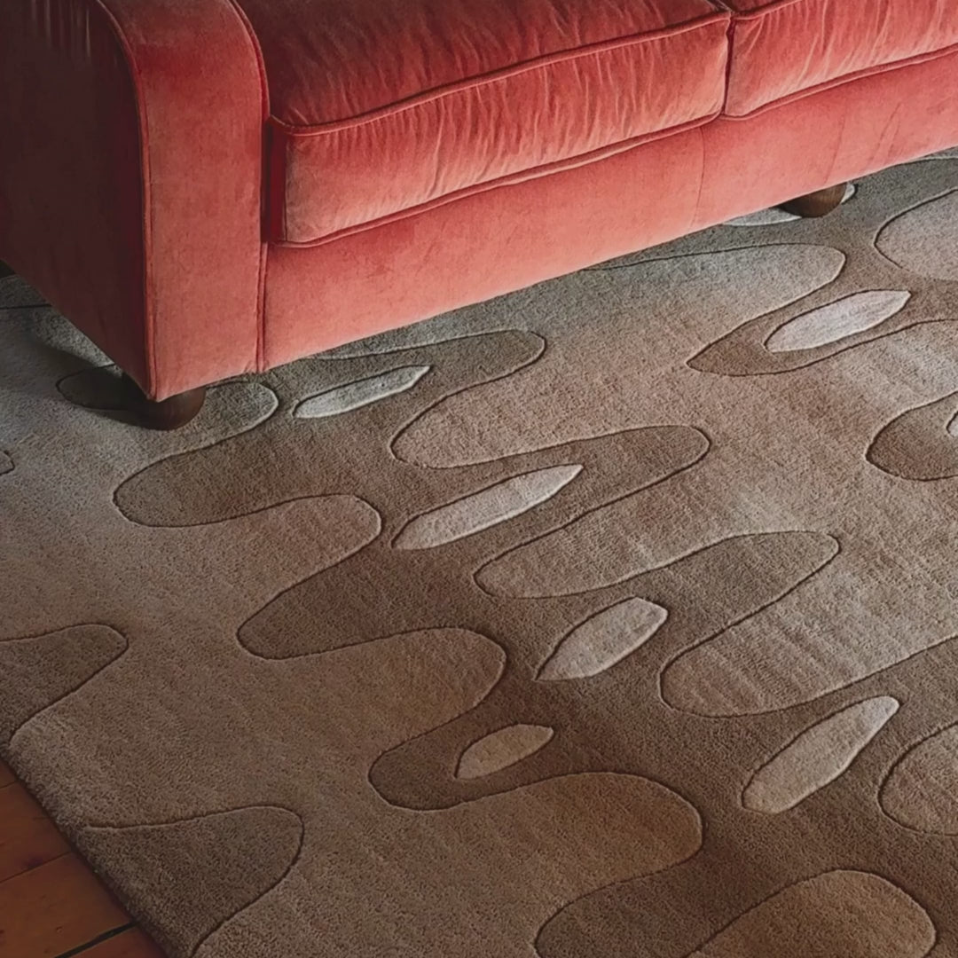 Wavy är handvävd och gjord av 100 % ull och dekorerad med ett mönster som formgivarna fått sin inspiration från mönstret som vågor i sanden vid vattenbrynet, det var också så mattan fick sitt namn. Kontrasterna i färg gör Wavy Rug till en iögonfallande matta i alla miljöer. Finns i två storlekar.