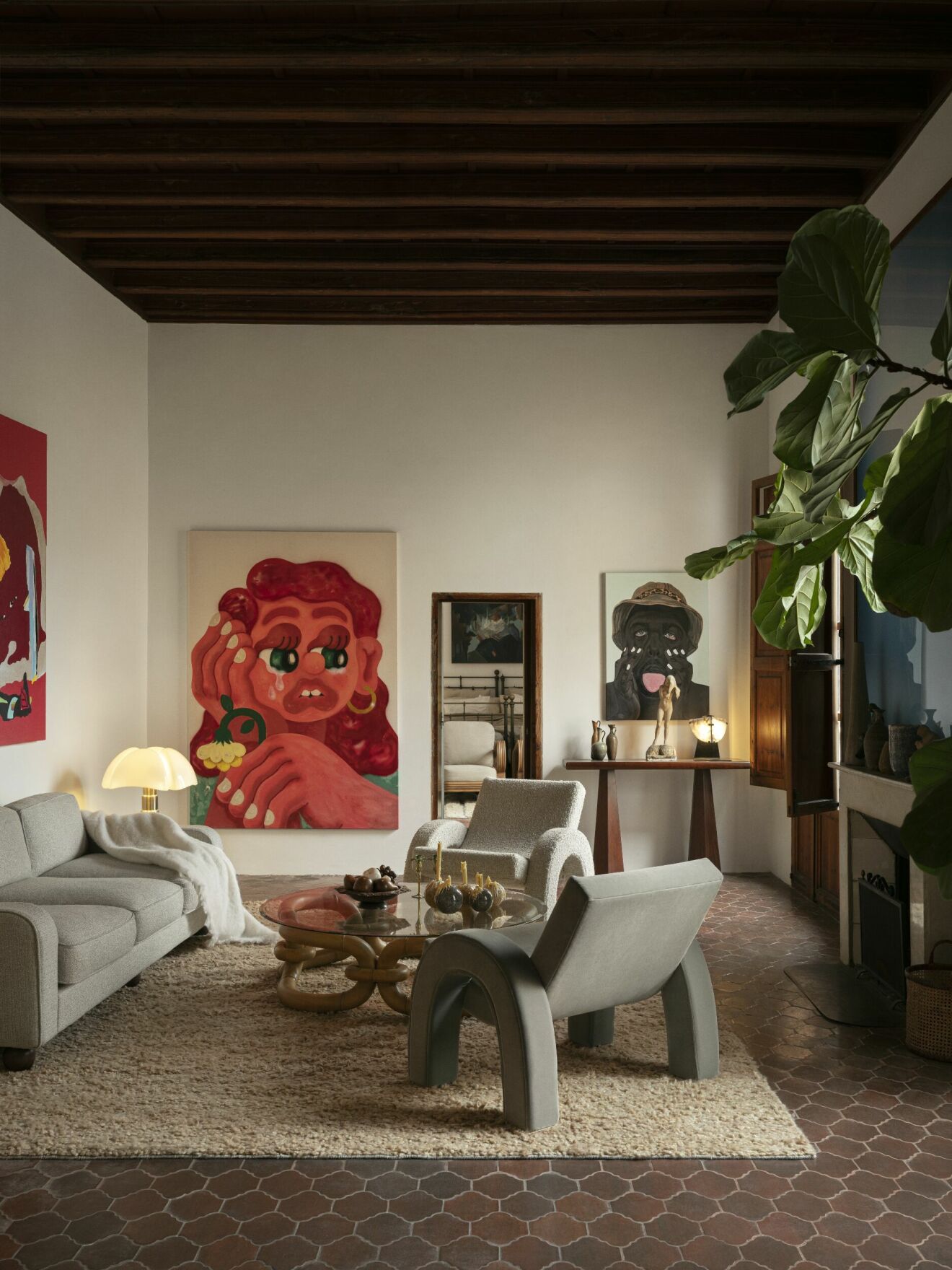 Today, Dusty Deco draws inspiration from the tapestry of life itself. Whether it's the rhythm of music, the visuals of a captivating movie, the streets they tread, or the exploration of new cities, each experience contributes to their creative wellspring. The present is marked by a move to the picturesque Mallorca, where the vibrant colors, historic buildings, and the interplay of light and nature have profoundly influenced their aesthetics. The eclectic mix of southern European design from the ‘50s-‘70s, combined with a love for Almodovar's maximalist style, results in an all-encompassing design ethos. Edin adds, “We do love a good contrast and to mix materials and shades. Also proportions. So high and low with thin and chunky are nice mixes and wood with concrete and velvet and fur with a polished marble. It’s all about mixing things we love from different time eras.”