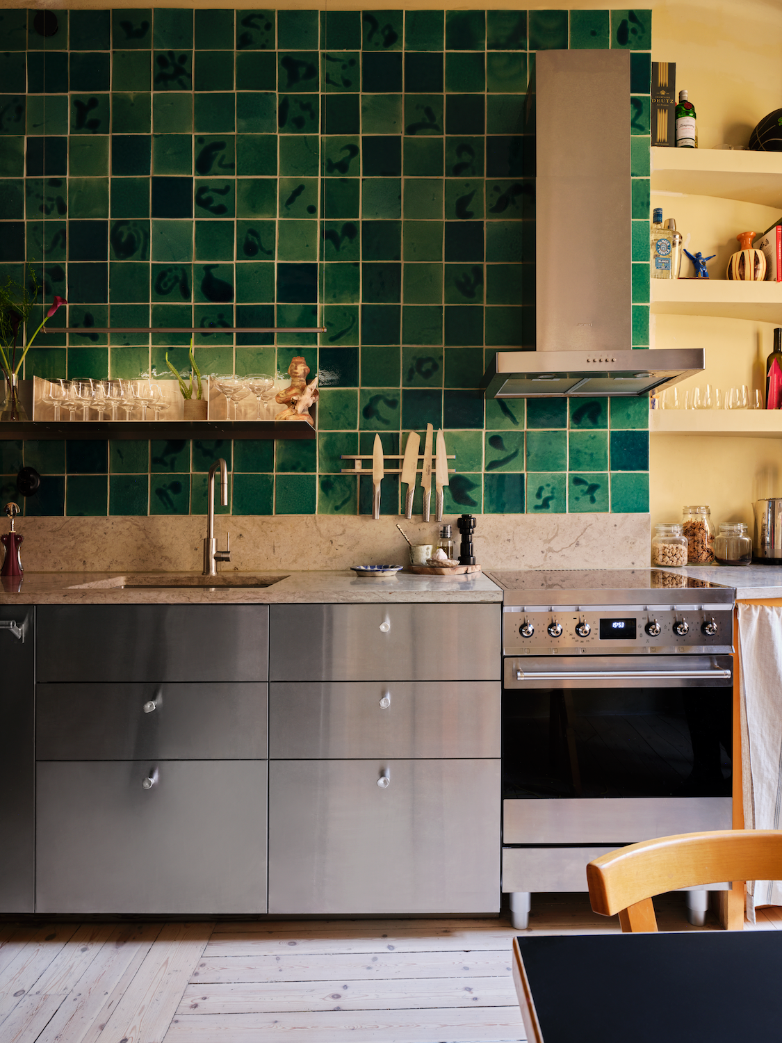 Hedvig’s handmade tile in their kitchen. Visas snart i Dusty Decos showroom i Stockholm.