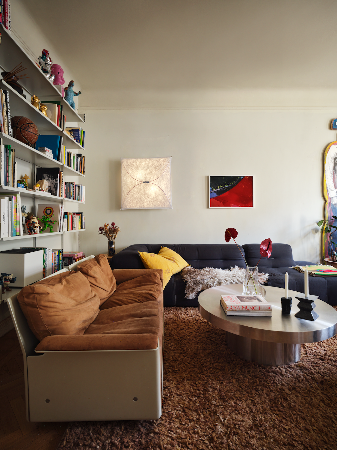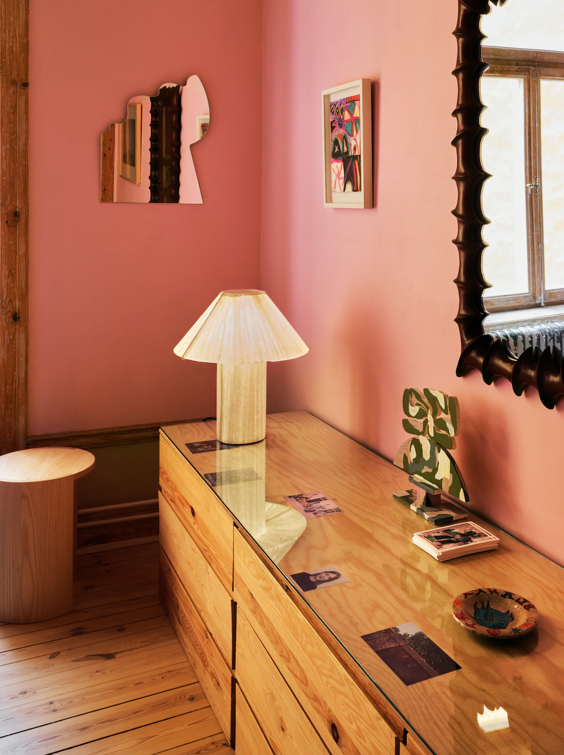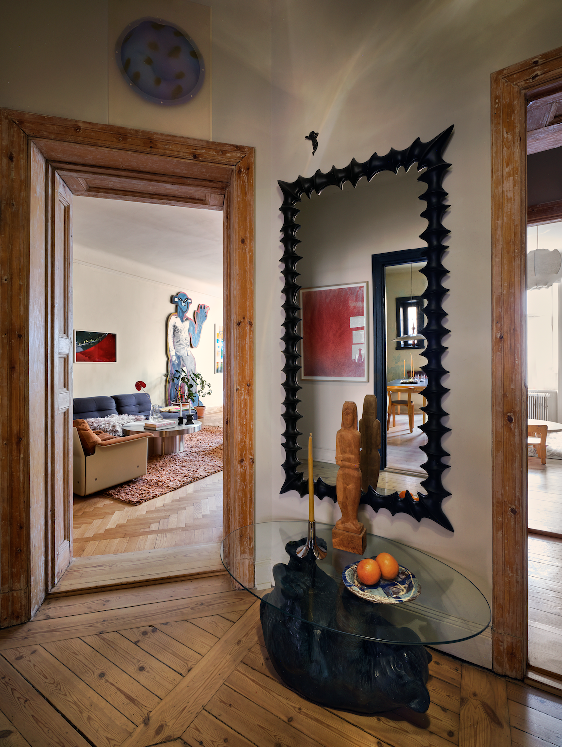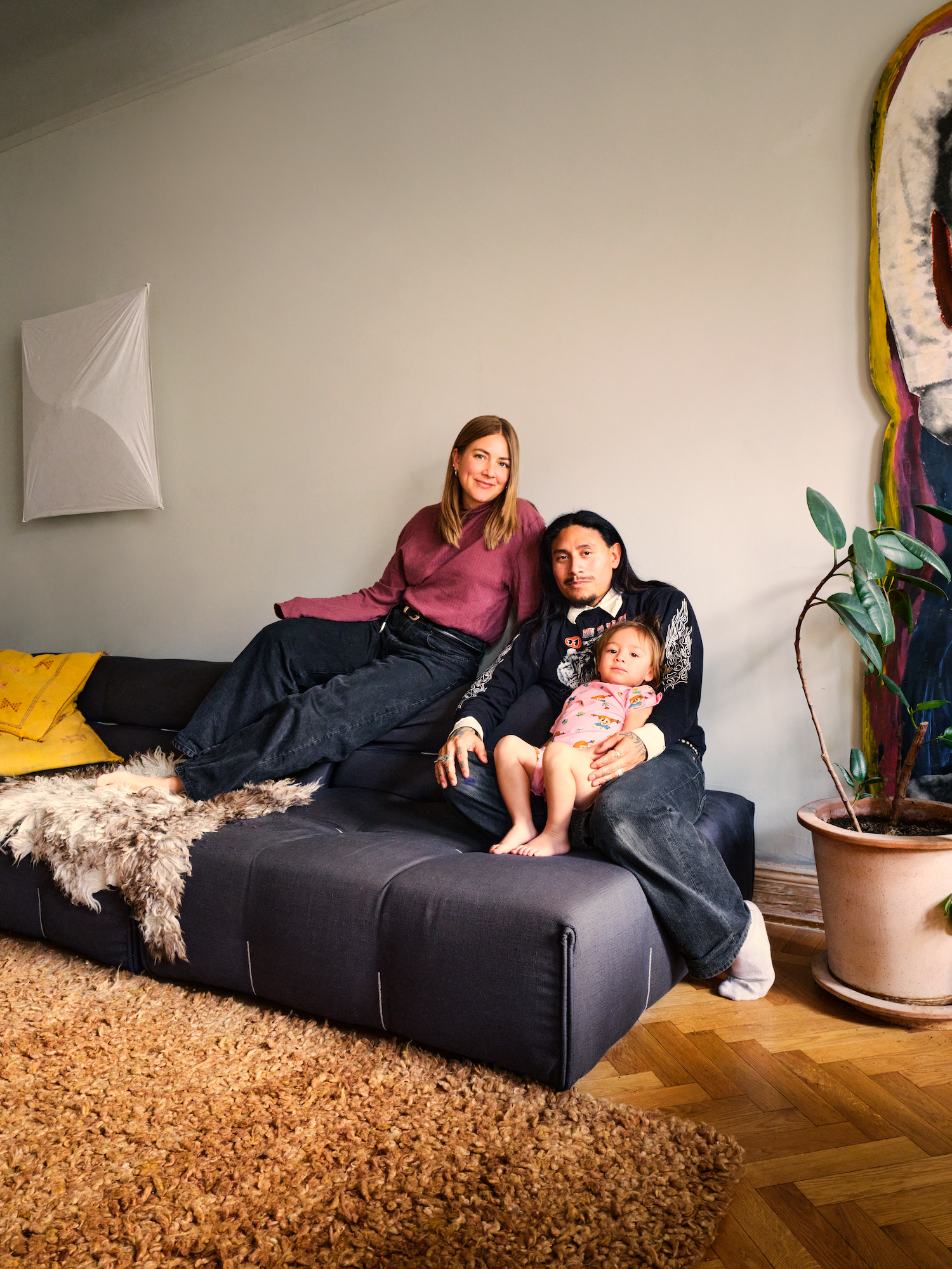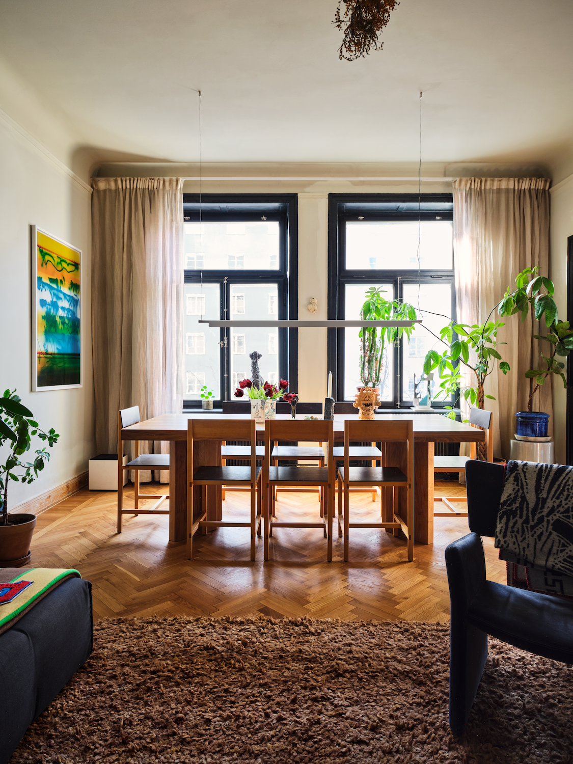 Konstnären Hank Grüner, känd för sitt uttrycksfulla visuella språk och sina samarbeten inom mode och design, delar sitt hem med Hedvig. Tillsammans har de skapat en plats där konst, hantverk och vardagsliv existerar sida vid sida.